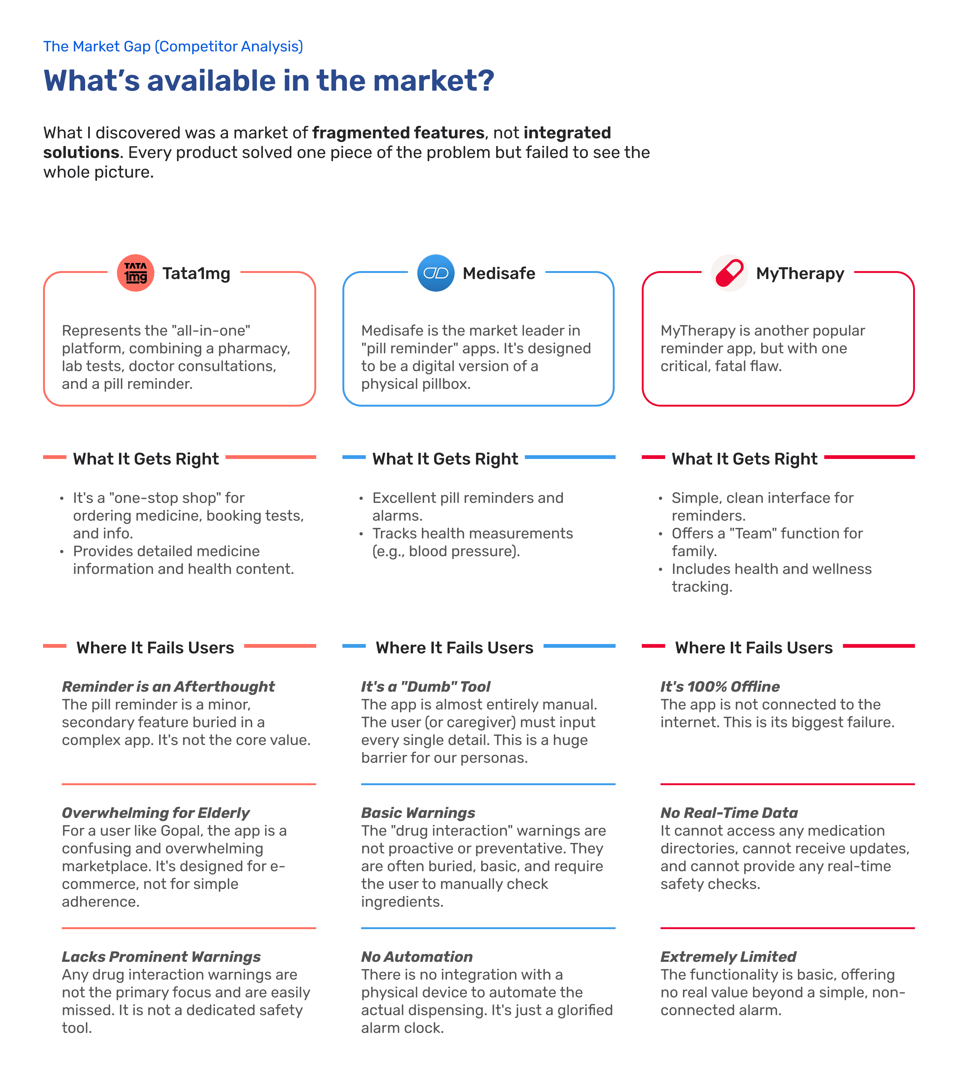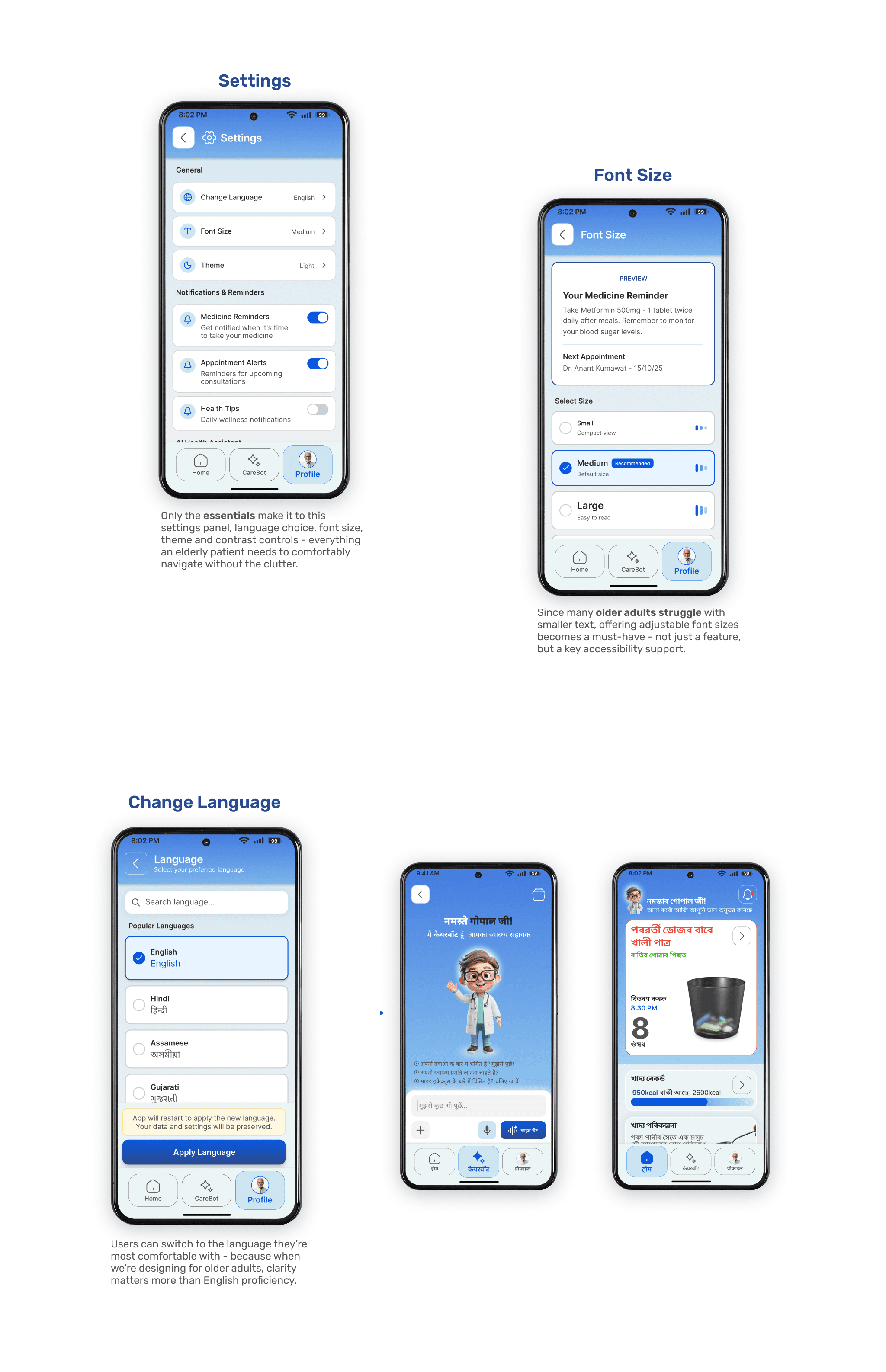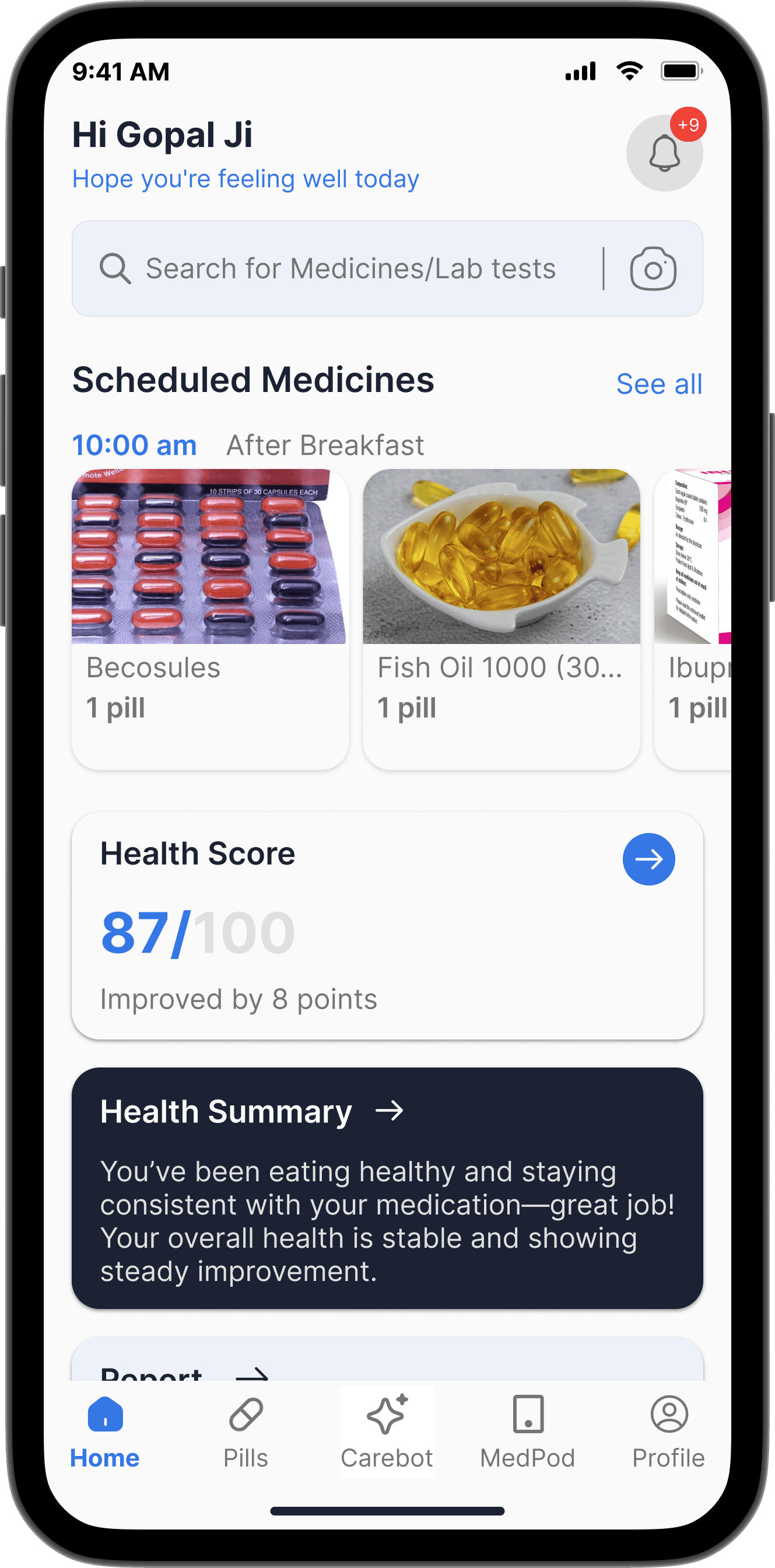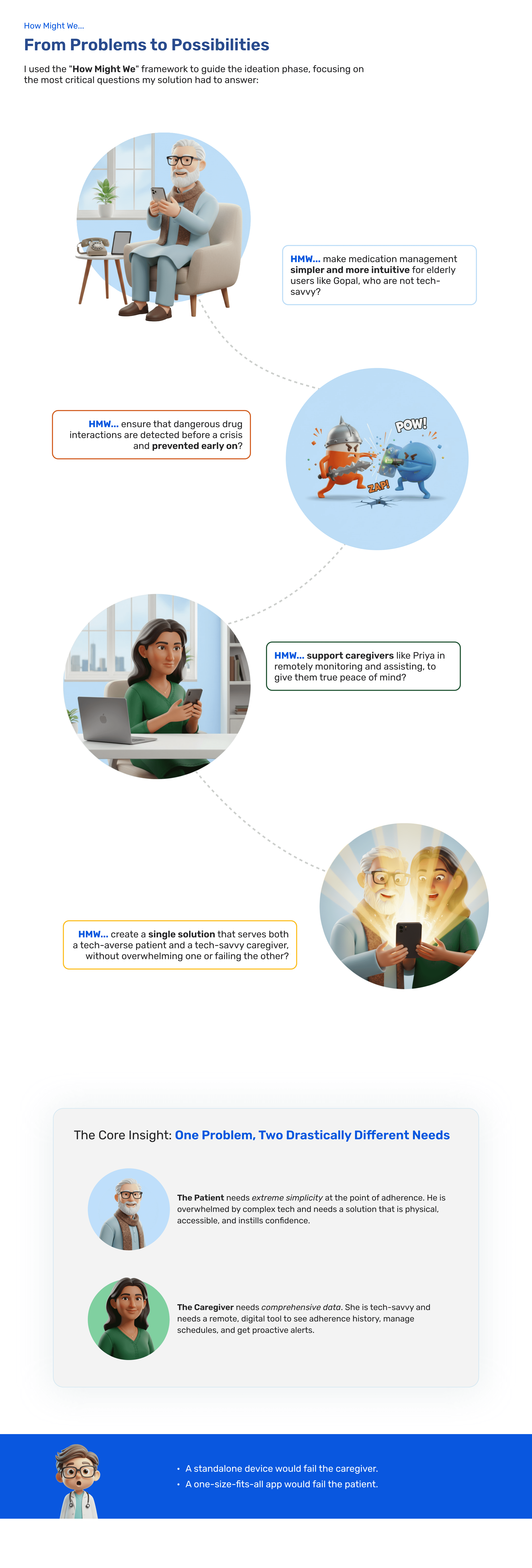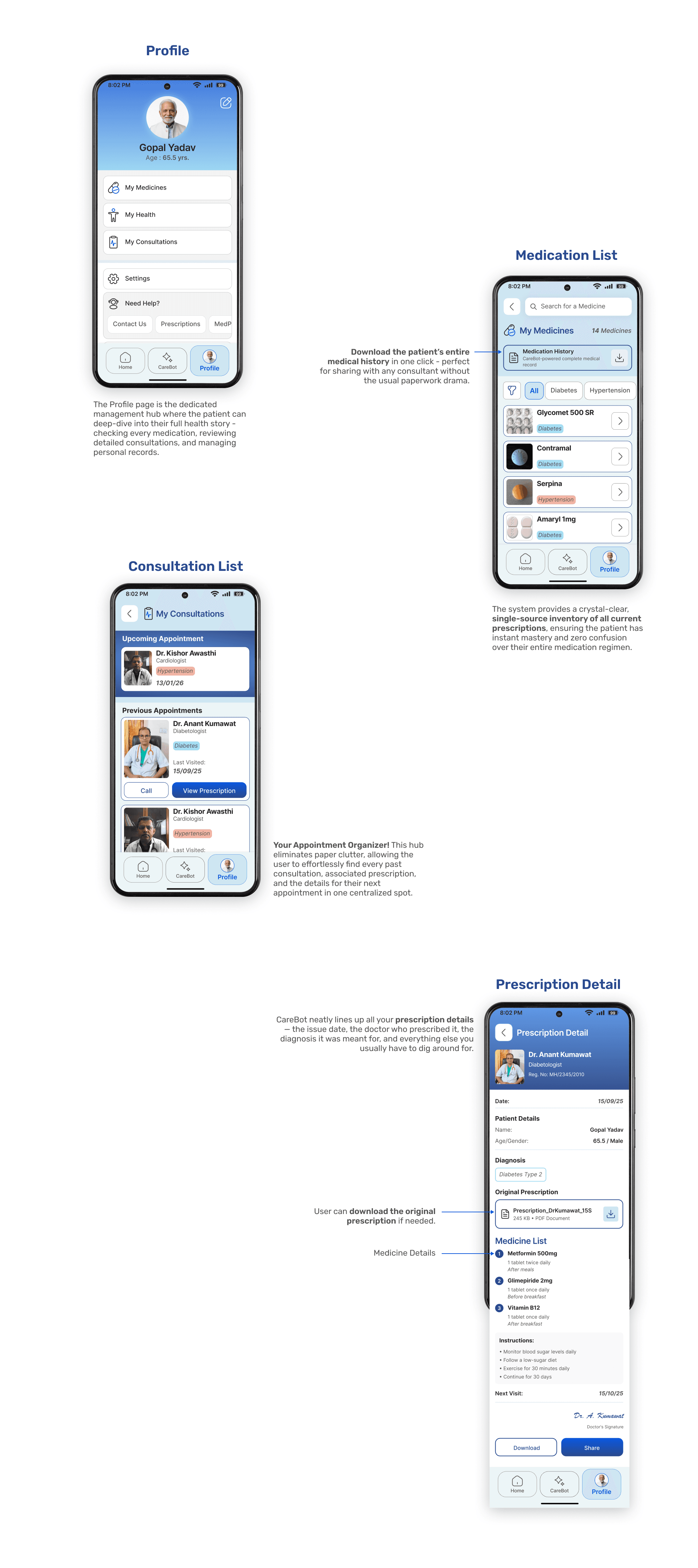 CareMed is a unified health management solution designed for elderly users managing multiple medications. It seamlessly connects a mobile app with a smart device (MedPod) to simplify pill consumption, reduce confusion, and provide instant voice-based support. The system also empowers caregivers to monitor medication adherence and overall health, creating a complete ecosystem for those with heavy medication routines.