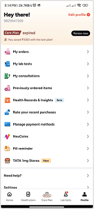 Combined Profile App Screens (Older Version)