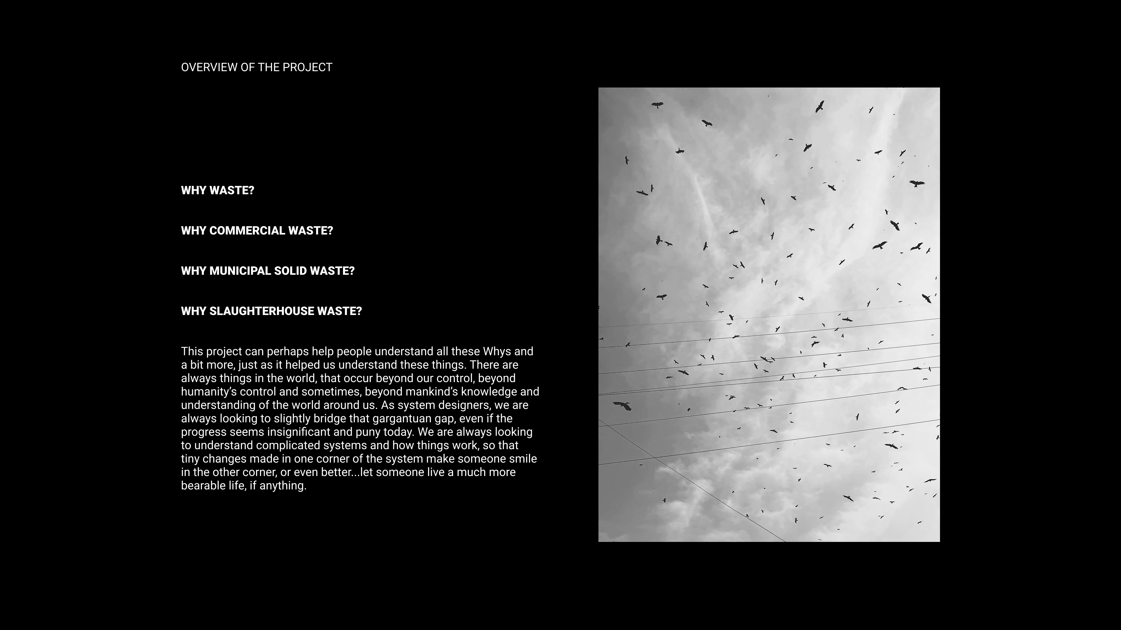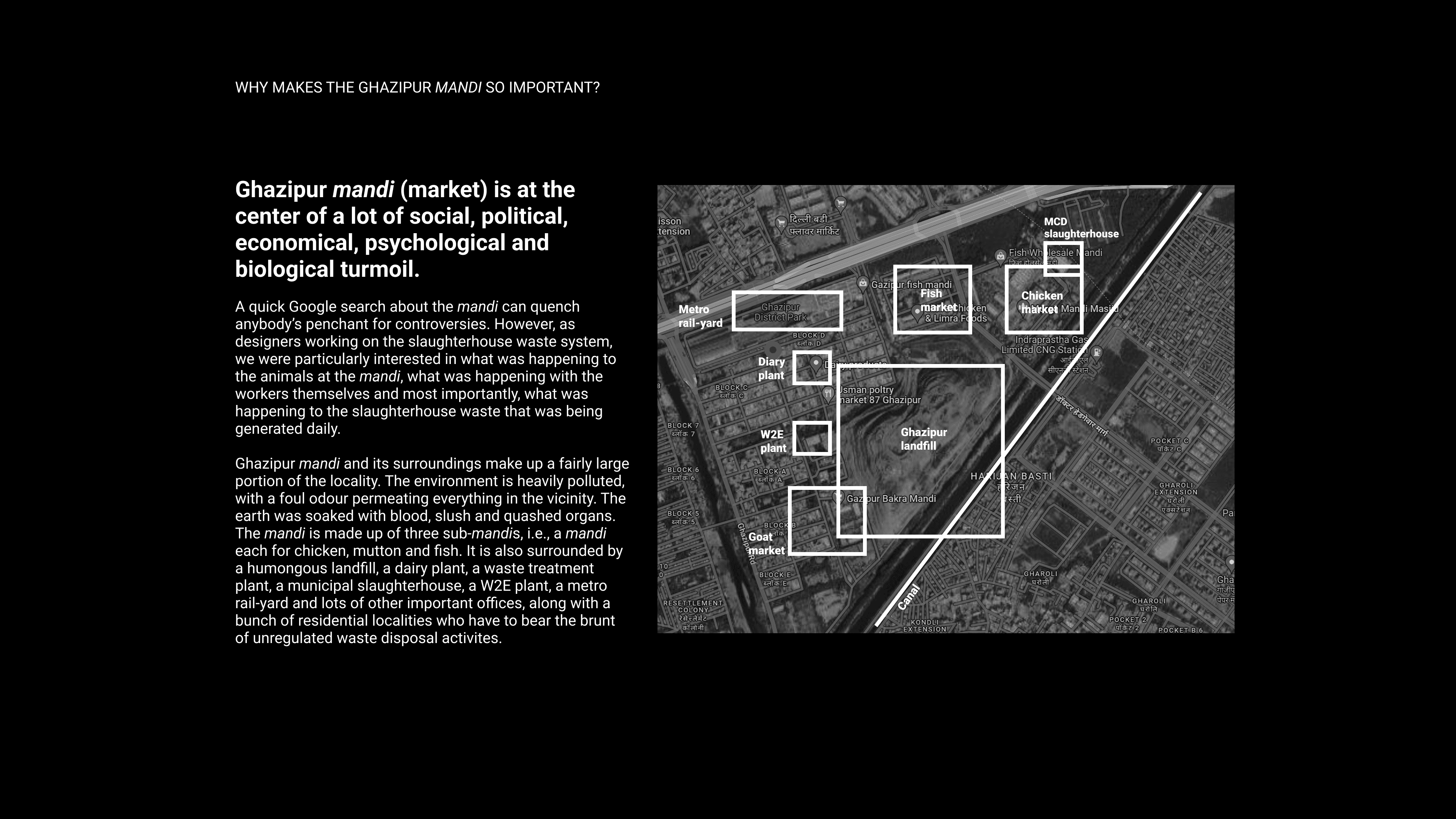 As part of the System Design module, we analyzed the chicken and fish mandi ecosystem in Ghaziabad and proposed context-sensitive solutions to improve its waste management system.