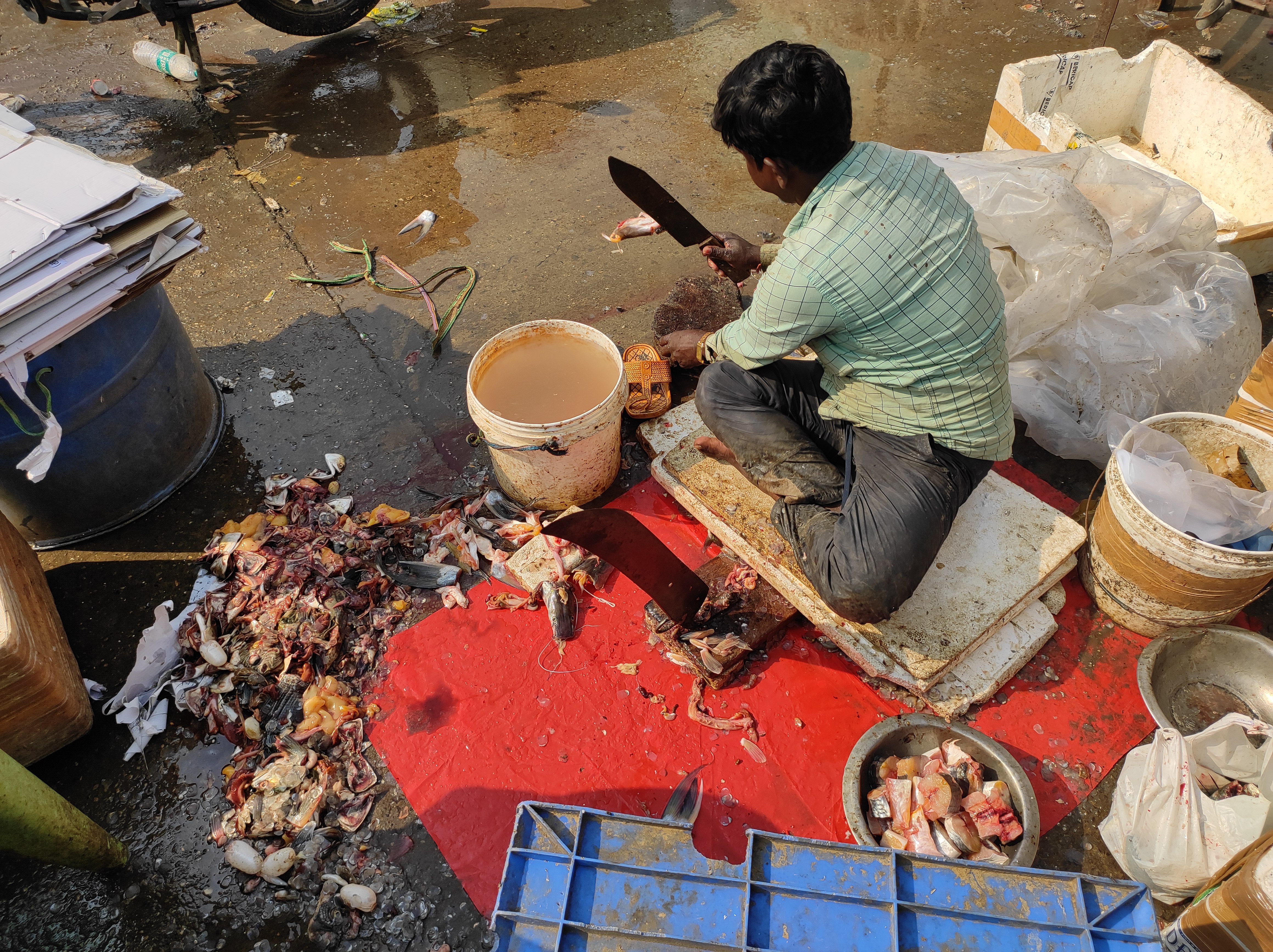 If you were wondering, we walked through the mandis, starting from chicken, fish and finally goat, with the goat mandi being farther away from the other two.