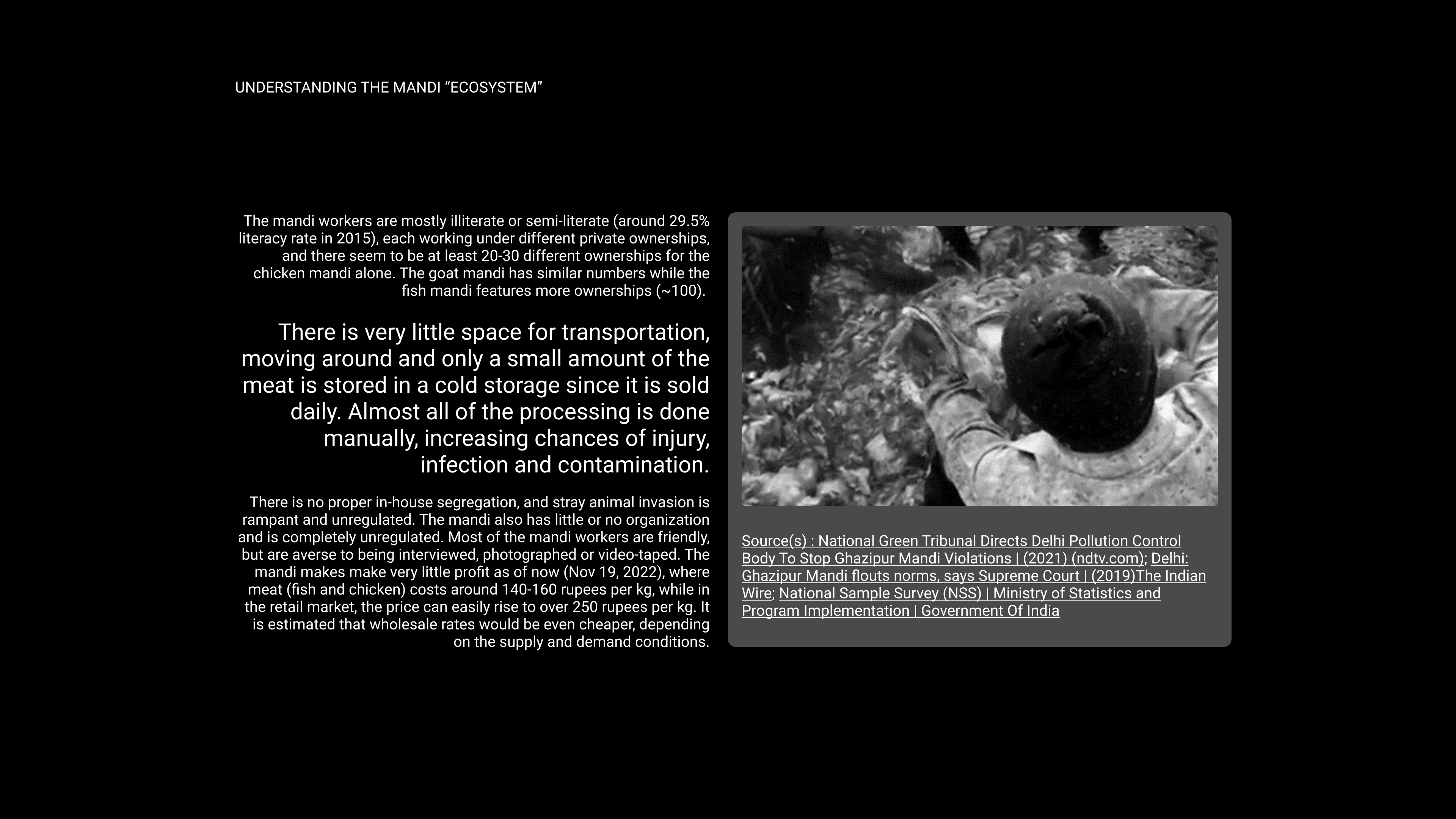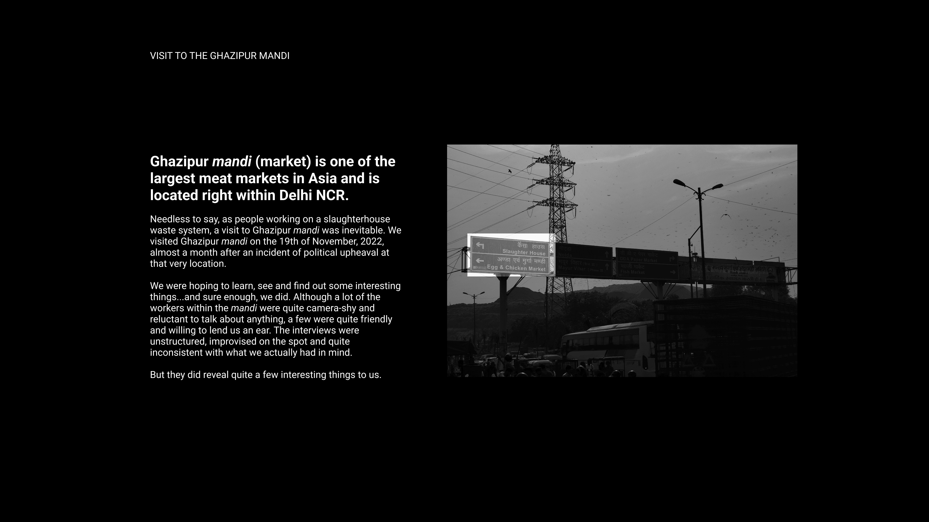 After our Ghazipur visit, we were able to conduct a big-picture analysis of the entire slaughterhouse system in India. We compiled the information we had collected, organized it into easily understandable chunks for people, connected the dots, and laid out the big picture for everyone to behold.